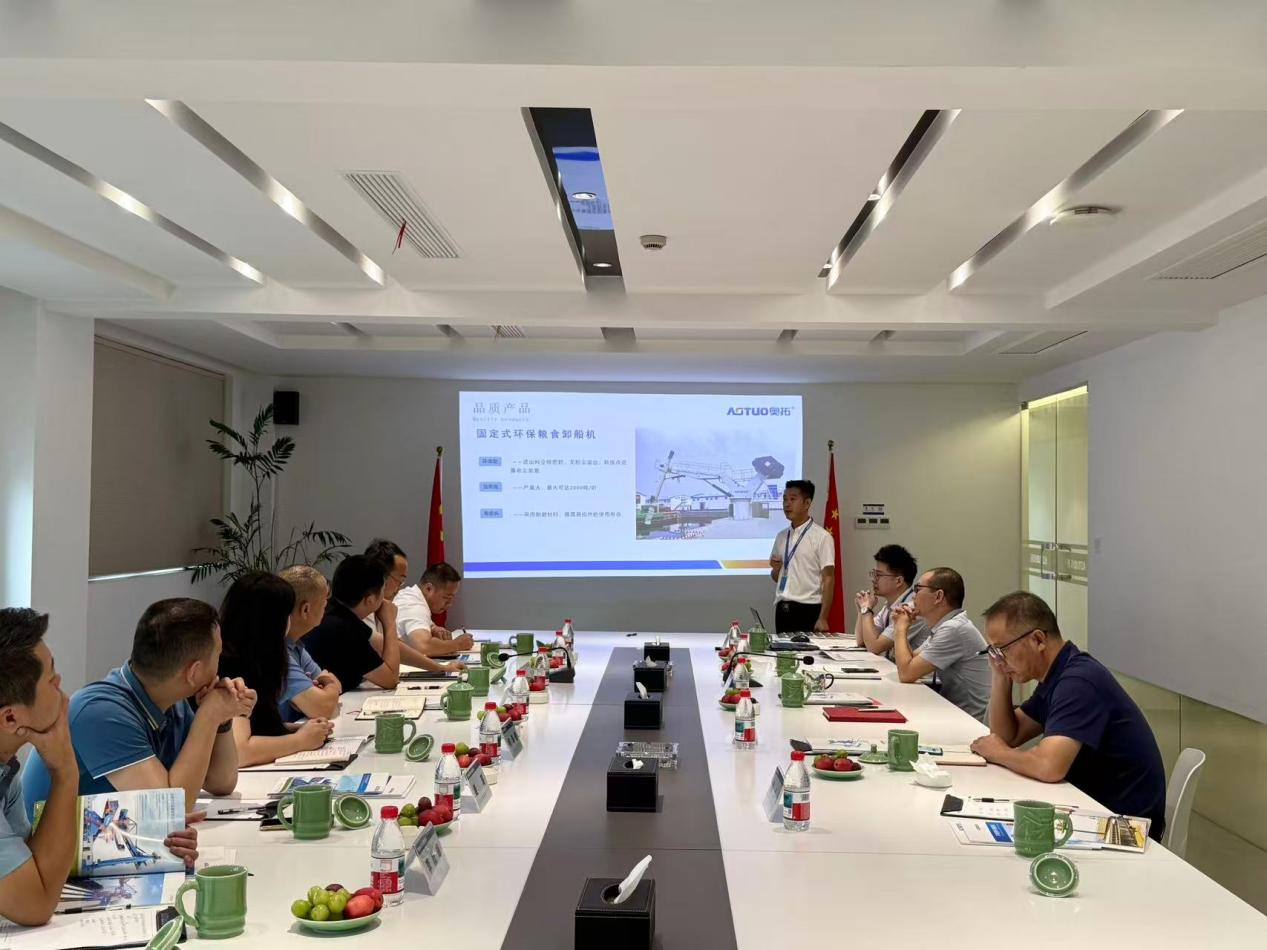Kamakailan lamang, si Yang Libin, miyembro ng Partido Committee at Deputy General Manager ng Guizhou Port and Shipping Group, ay nanguna sa isang delegasyon para sa isang malalim na inspeksyon at teknikal na palitan. Si Jigui Bo, chairman at pangulo ng Aotuo, kasama ang pangunahing pangkat ng teknikal, ay nag -host ng delegasyon sa buong pagbisita. Ang dalawang partido ay nakikibahagi sa malawak na mga talakayan sa mga paksa tulad ng mga bulk cargo paghawak ng kagamitan, proseso, port digitalization, at mga matalinong solusyon sa logistik.